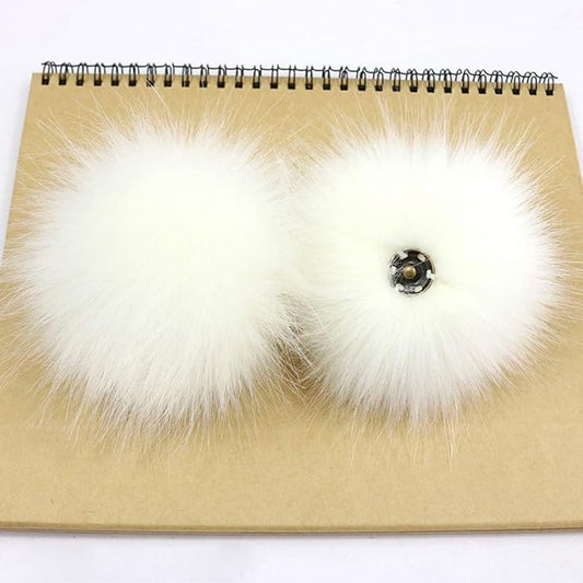 Pompon fausse fourrure de 13 cm avec bouton pression