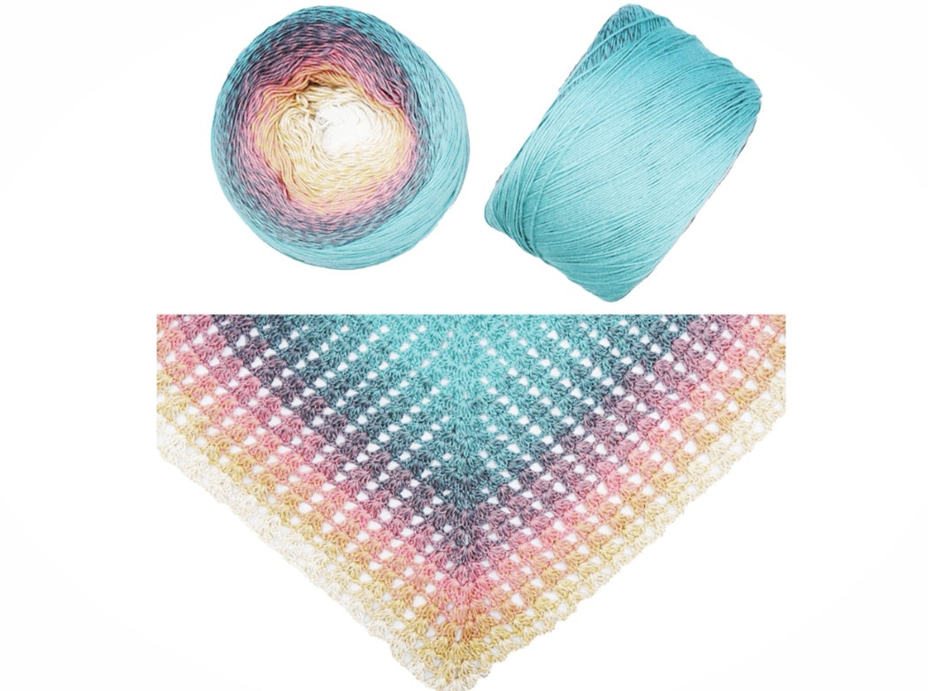 - Avec une seule pelote, vous réaliserez, au crochet ou aux aiguilles à tricoter, des châles, des boléros, des étoles, des foulards etc.